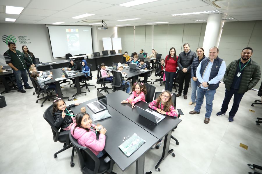 Com o objetivo de incentivar as crianças a aprenderem lógica de programação, pensamento computacional, criatividade, montagem e concepção de protótipos de robótica, o Senar/MS preparou uma semana repleta de aventuras tecnológicas para os filhos, netos e sobrinhos dos colaboradores do Sistema Famasul.