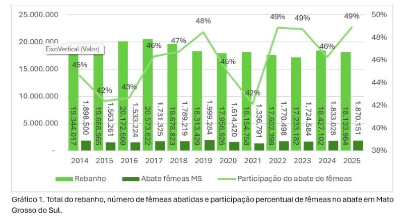 Segundo a Famasul, o Estado já superou o fundo do ciclo, marcado por preços deprimidos e descarte acelerado de fêmeas, mas ainda não ingressou plenamente na fase de alta, que pressupõe redução mais clara no abate de matrizes e recomposição consistente do rebanho.